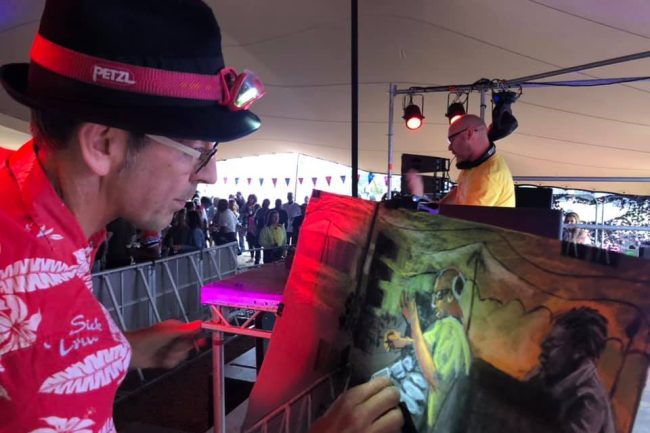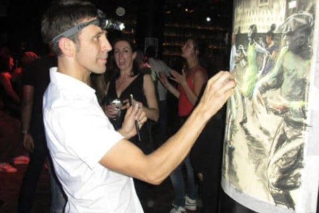 Many clients request a live room or performance capture by jazz dancing figurative artist Oscar Romp. Respected for documenting underground dance floors around the world, we can capture & mix the drawing live into the feed so people get to experience the piece being created in real time, adding a whole new dimension to your event. Or you may simply prefer the artistic capture without it being filmed. You will also get a unique, signed print of the collectable, custom creation.