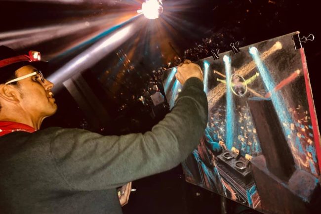 Add live drawing into the mix and the atmosphere itself becomes part of the artwork — documented and woven into the visuals in real time.