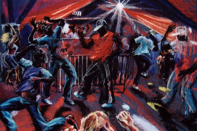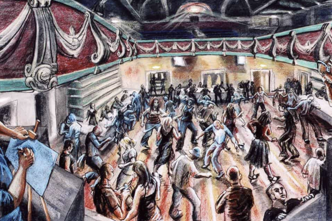 Live drawing can be incorporated as a responsive layer — capturing the room, the audience, and the unfolding atmosphere as part of the artwork itself.